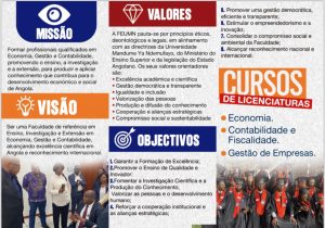 A Faculdade de Economia da Universidade Mandume Ya Ndemufayo (FEUMN), no Lubango, reafirma o seu compromisso com a formação de profissionais altamente qualificados nas áreas de Economia, Gestão e Contabilidade, contribuindo directamente para o progresso económico e social de Angola.
